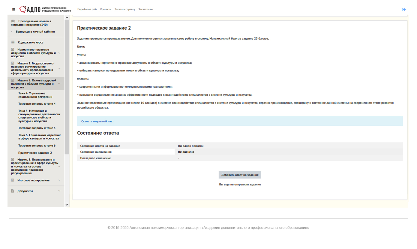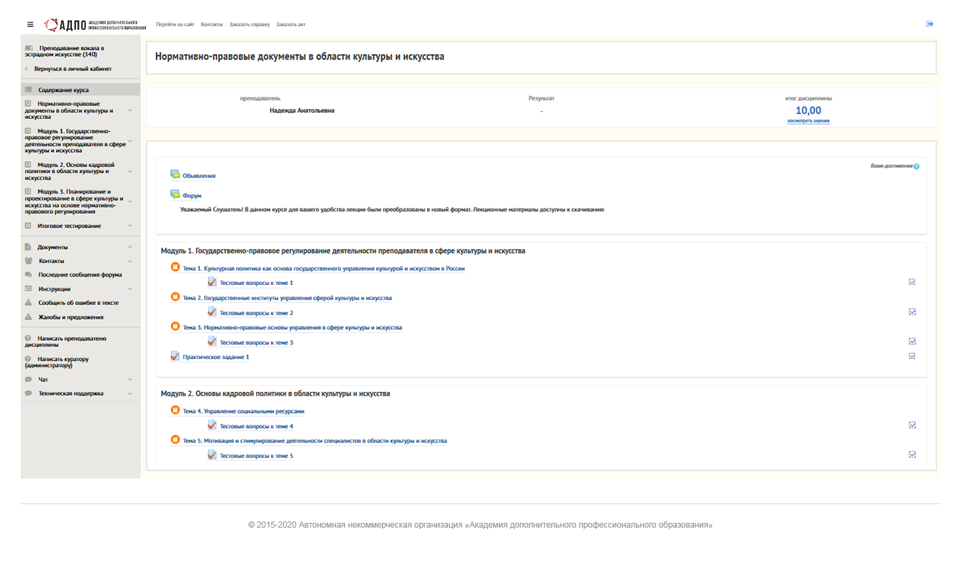 • проходить контроль знаний по темам и модулям.
