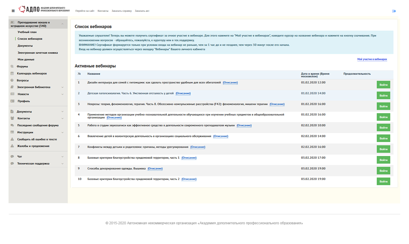 • участвовать в онлайн-вебинарах;