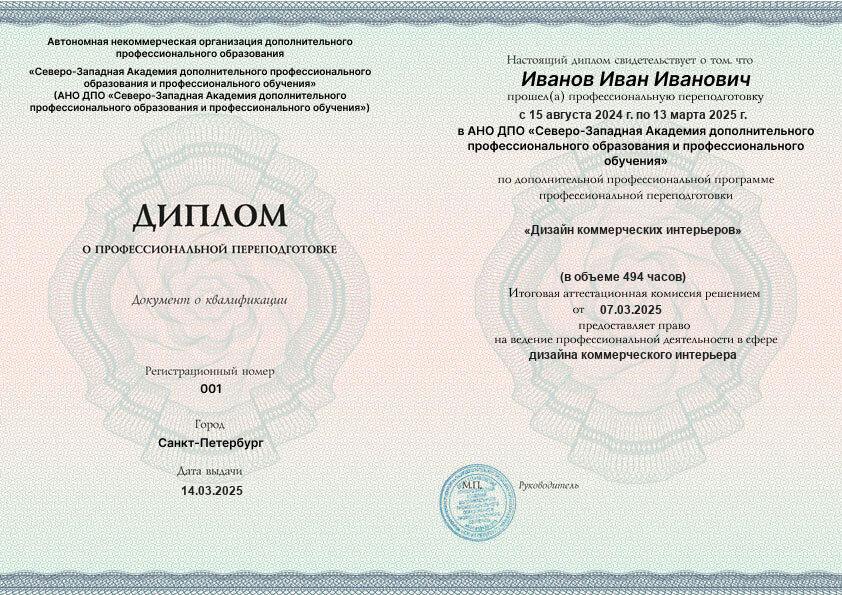 Курс обучения Дизайн коммерческих интерьеров (494ч)