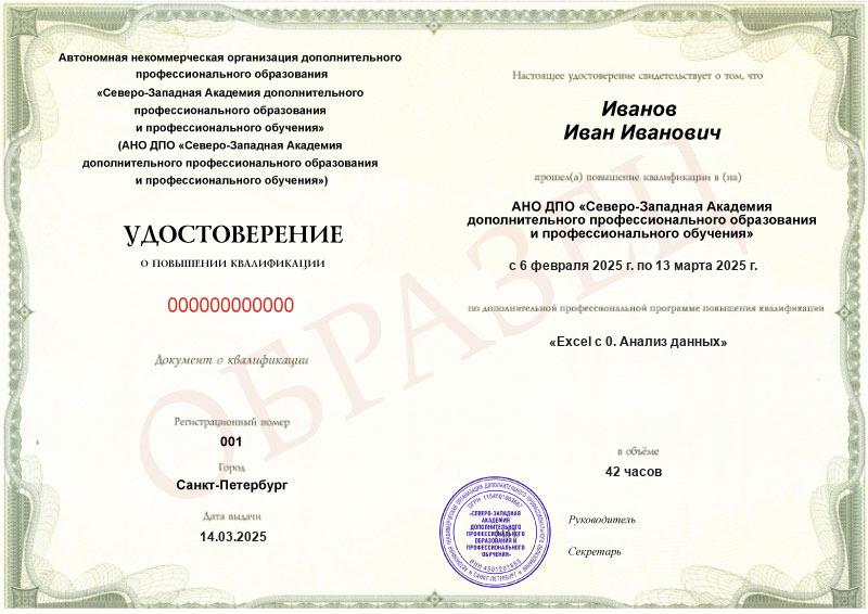 Курс повышения квалификации Exсel с 0. Анализ данных (42ч)