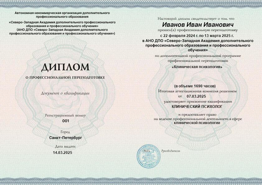 Курс обучения Клиническая психология (1690ч)